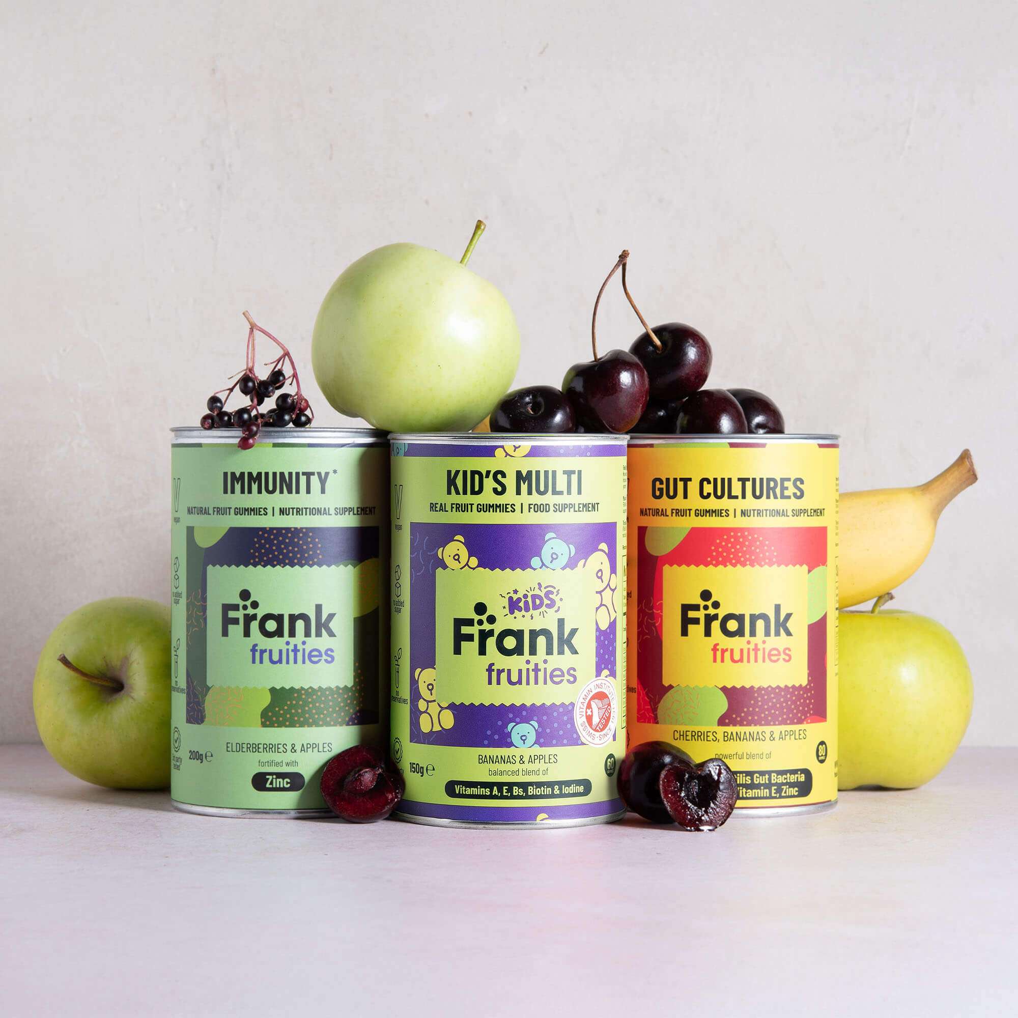Komplekt Lastetrall sisaldab: 1x Immunity Natural Fruit Gummies N80 1x Kid’s Multi N60 ja 1x Gut Cultures Natural Fruit Gummies N80